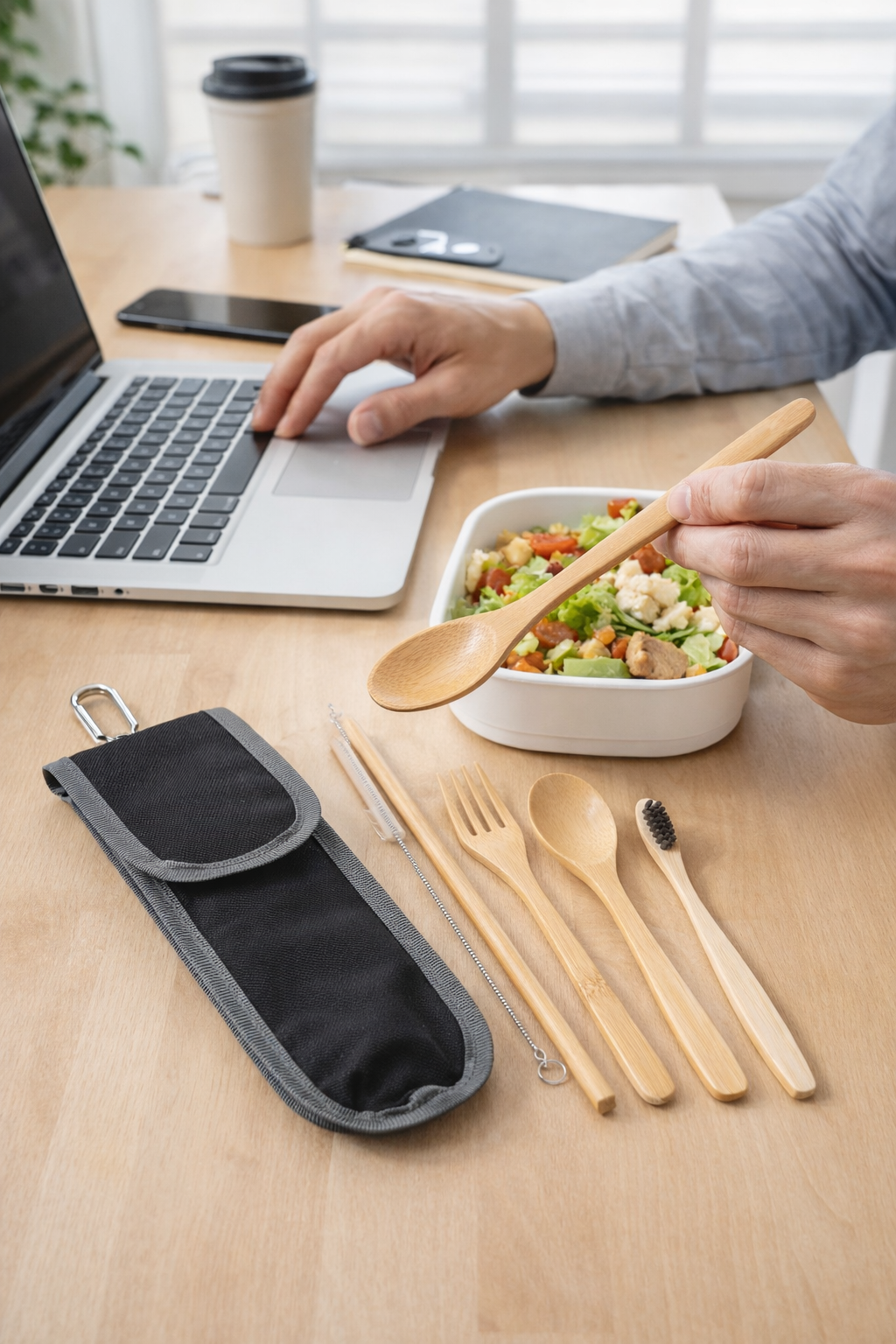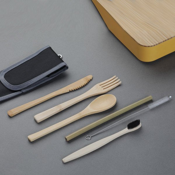 סט אקולוגי ממותג מבמבוק עם קייס ושאקל
