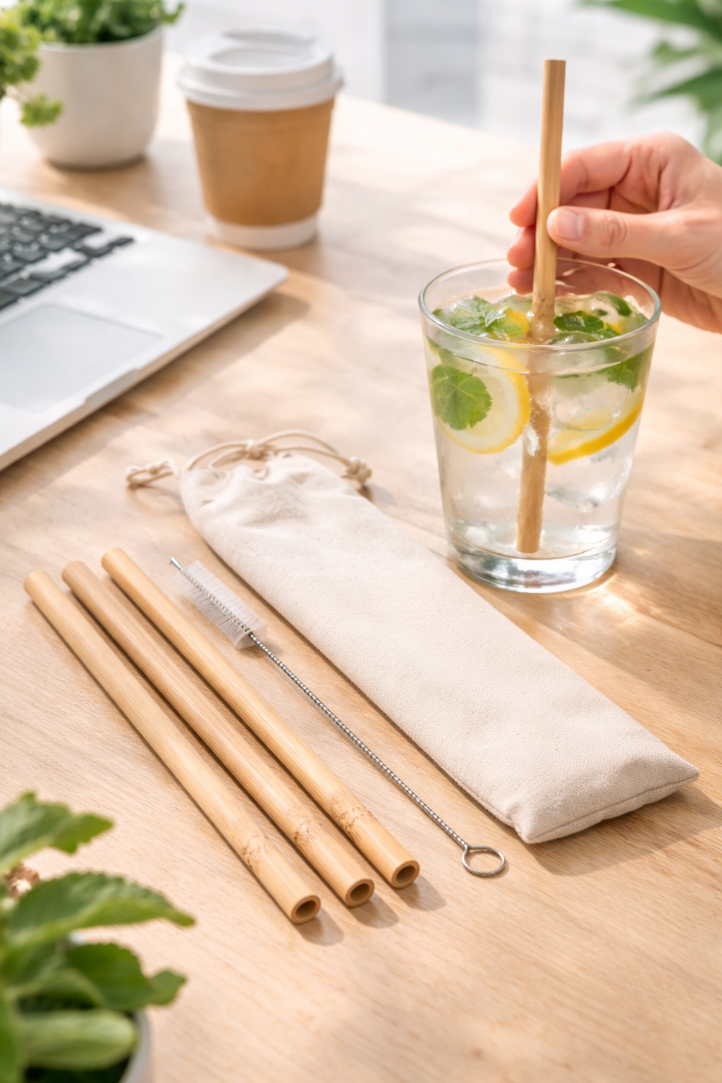 סט קשים אקולוגיים מבמבוק עם נרתיק ממותג
