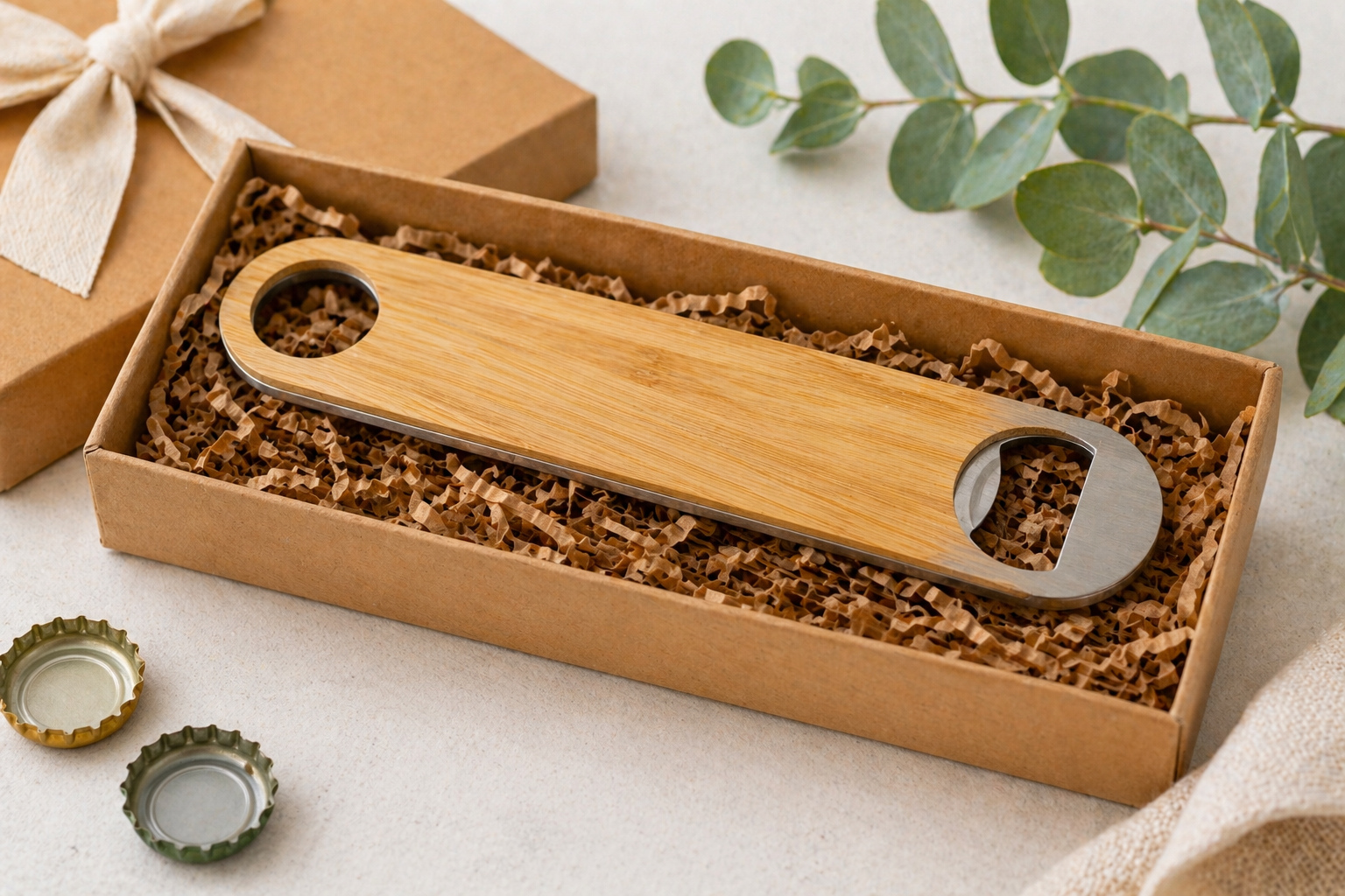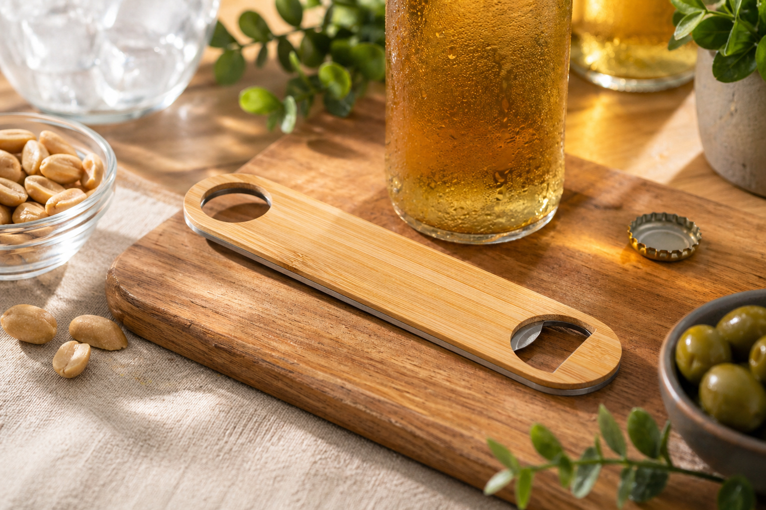 פותחן בקבוקים אקולוגי "לונגי" מבמבוק ונירוסטה