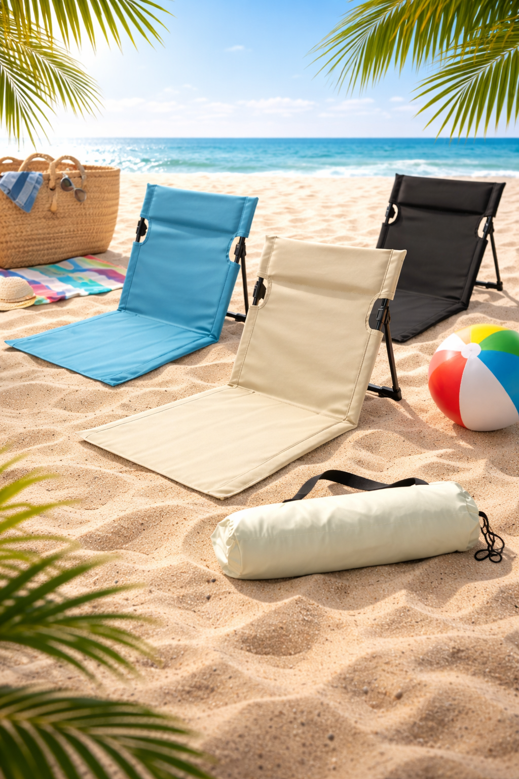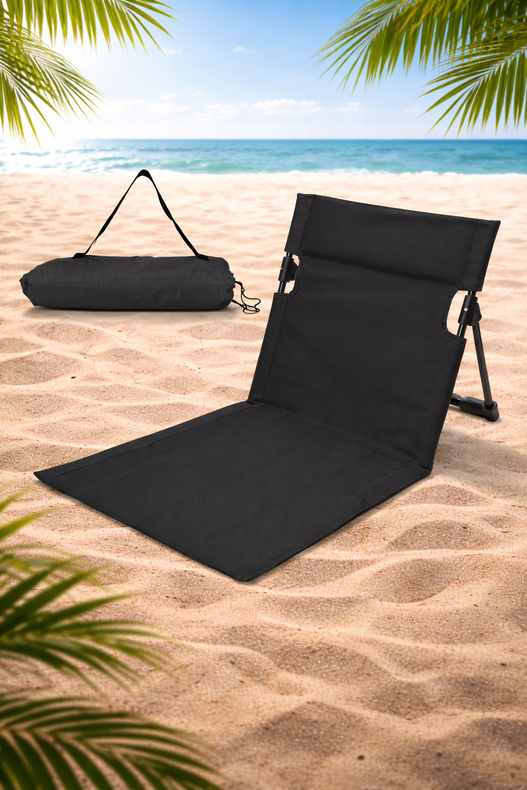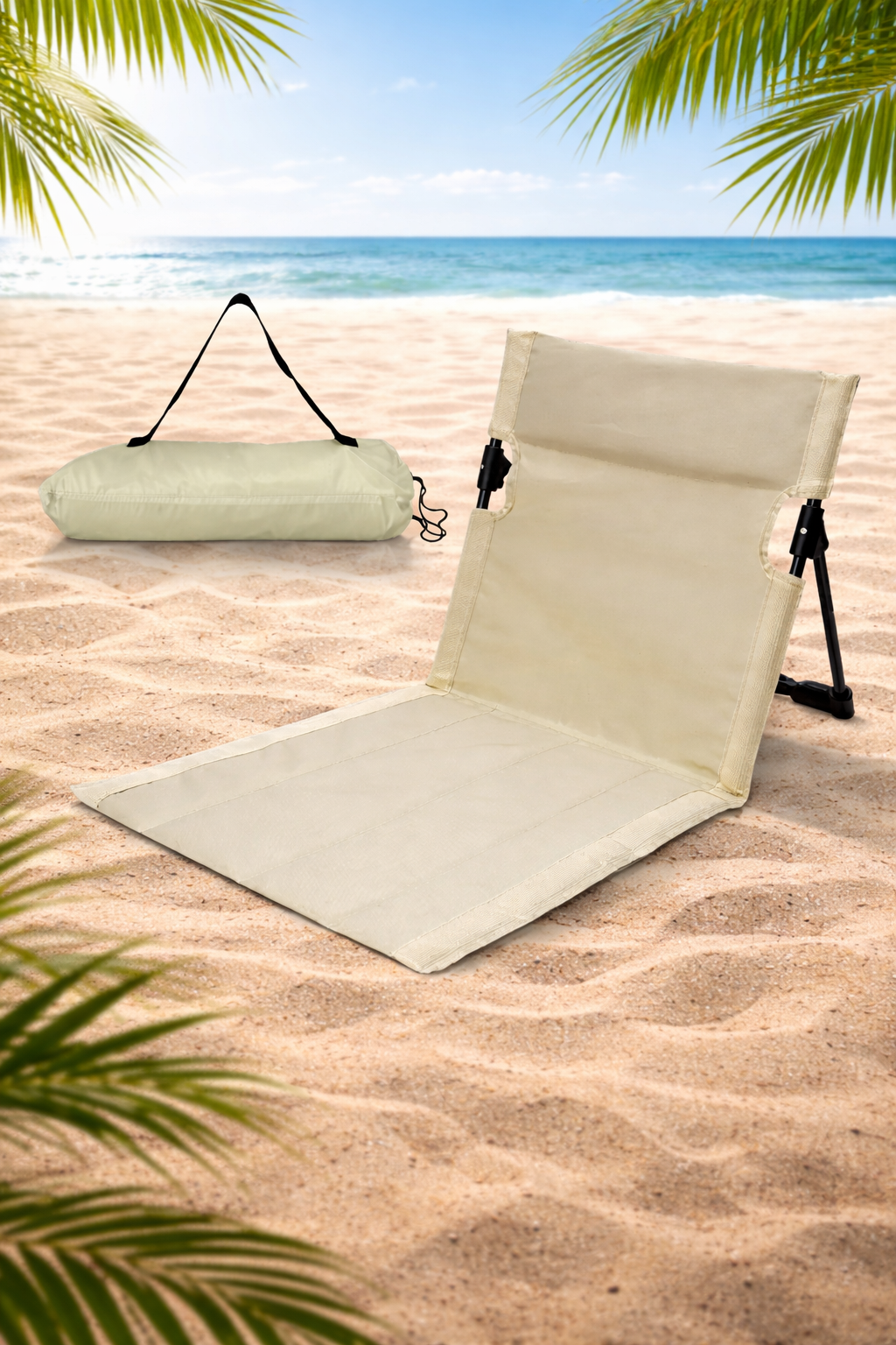 מחצלת מעוצבת עם משענת גב לנוחות מרבית בים, בפיקניק ובשטח.