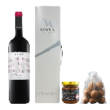 מארז חג אלגנטי המשלב יין אדום איכותי מבית יקב מוני יחד עם חרוסת מסורתית ואגוזי מלך טבעיים – שילוב מושלם לשולחן החג או כמתנה מכובדת לעובדים וללקוחות.