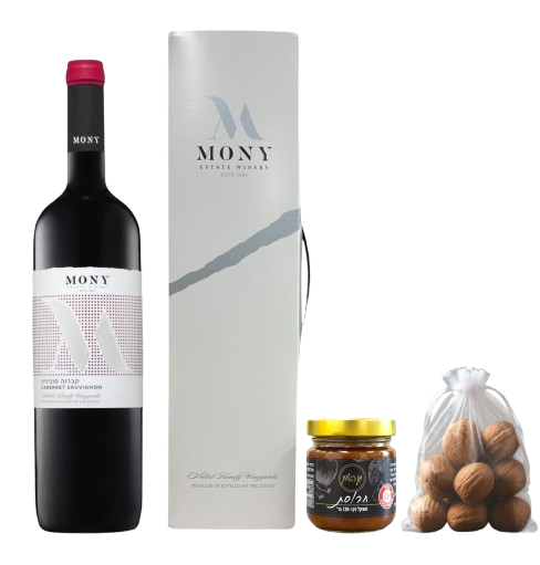 המארז כולל יין אדום מסדרת M של יקב מוני, יין ישראלי עשיר ומאוזן המתאים לארוחות חגיגיות ולאירוח. לצד היין מצורפים חרוסת איכותית ואגוזי מלך טבעיים המשלימים את חוויית הטעמים ומעניקים למארז אופי חגיגי ומפנק.