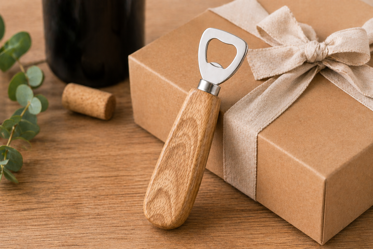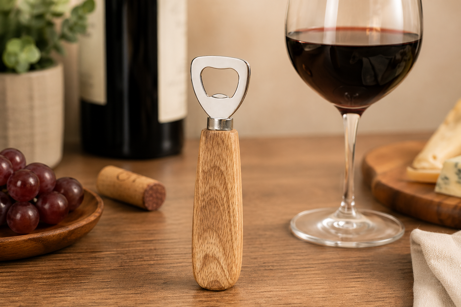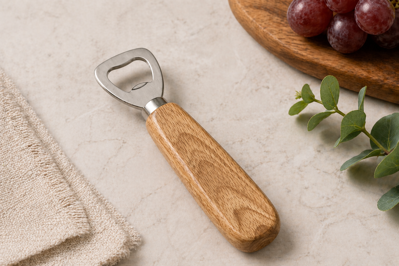 פותחן בקבוקים מעוצב עם ידית עץ ממותג